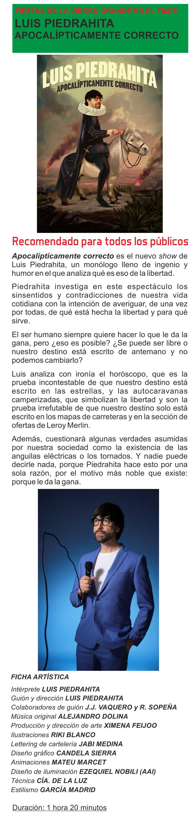 Fiestas Virgen Grande en el TMCE. LUIS PIEDRAHITA. Apocalípticamente correcto