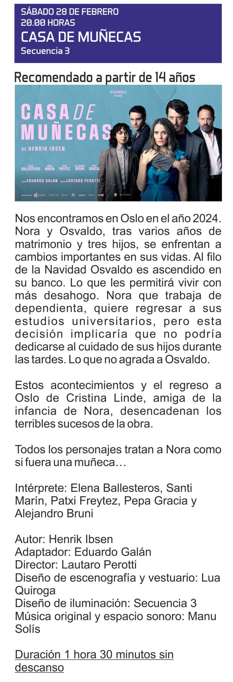 Sábado 28 de febrero 20:00 h.