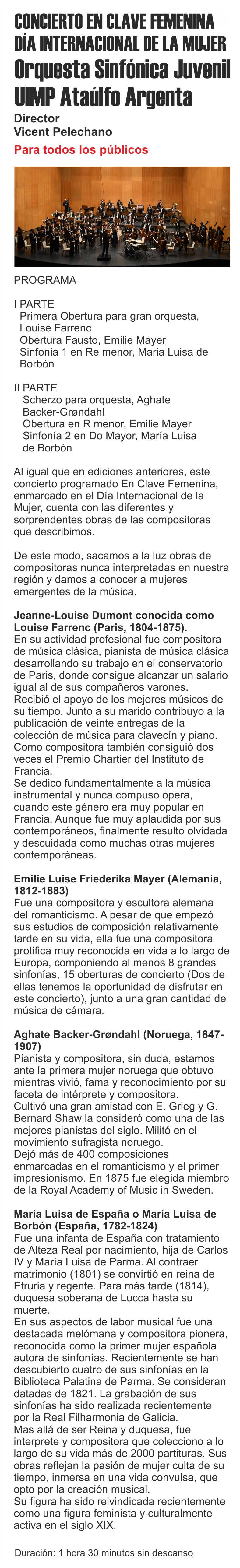 Concierto en CLAVE FEMENINA. Orquesta Sinfónica Juvenil UIMP Ataúlfo Argenta