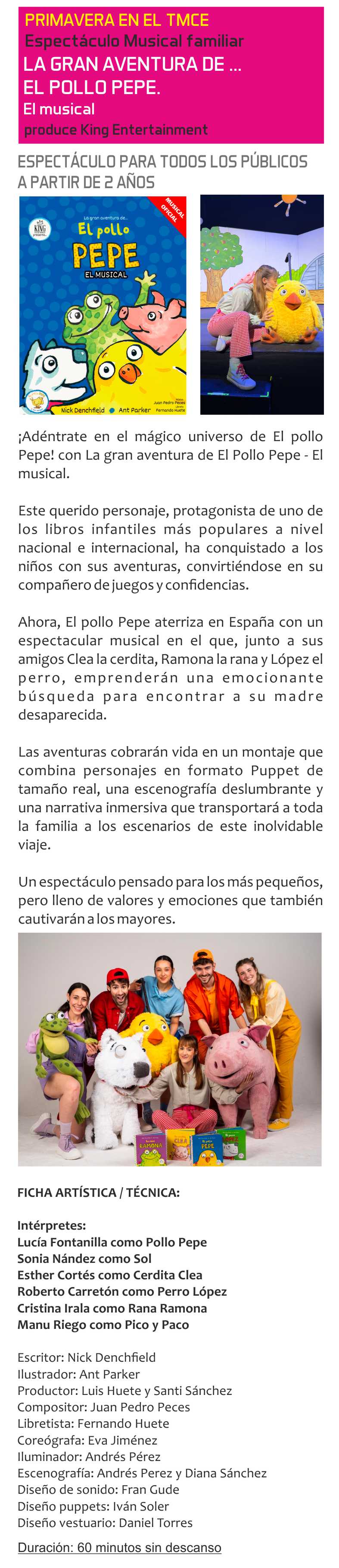 Primavera TMCE. LA GRAN AVENTURA DE... EL POLLO PEPE. El musical