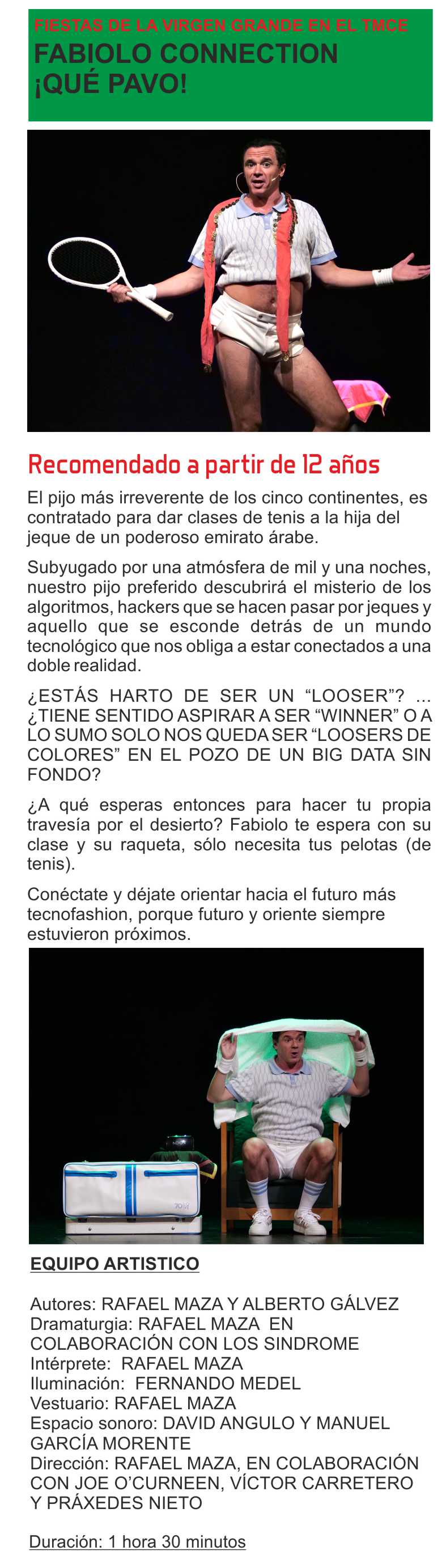 Fiestas Virgen Grande en el TMCE. RAFA MAZA presenta FABIOLO CONNECTION. ¡Qué pavo!