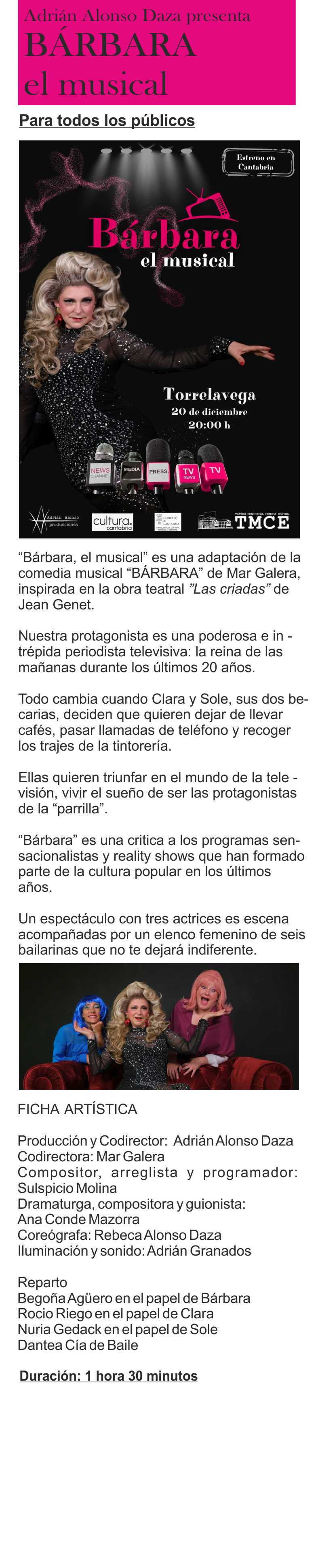 BÁRBARA, EL MUSICAL presentado por Adrián Alonso Daza