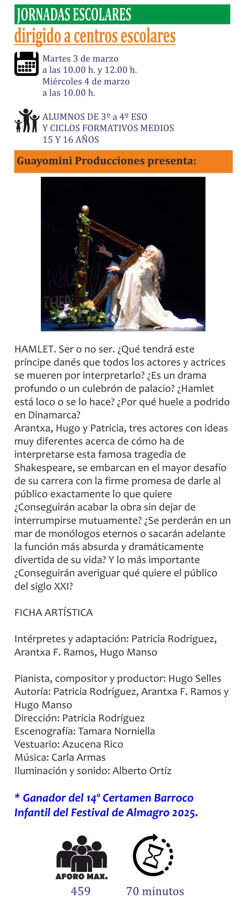 Martes 3 de marzo a las 10.00 h. y 12.00 h.