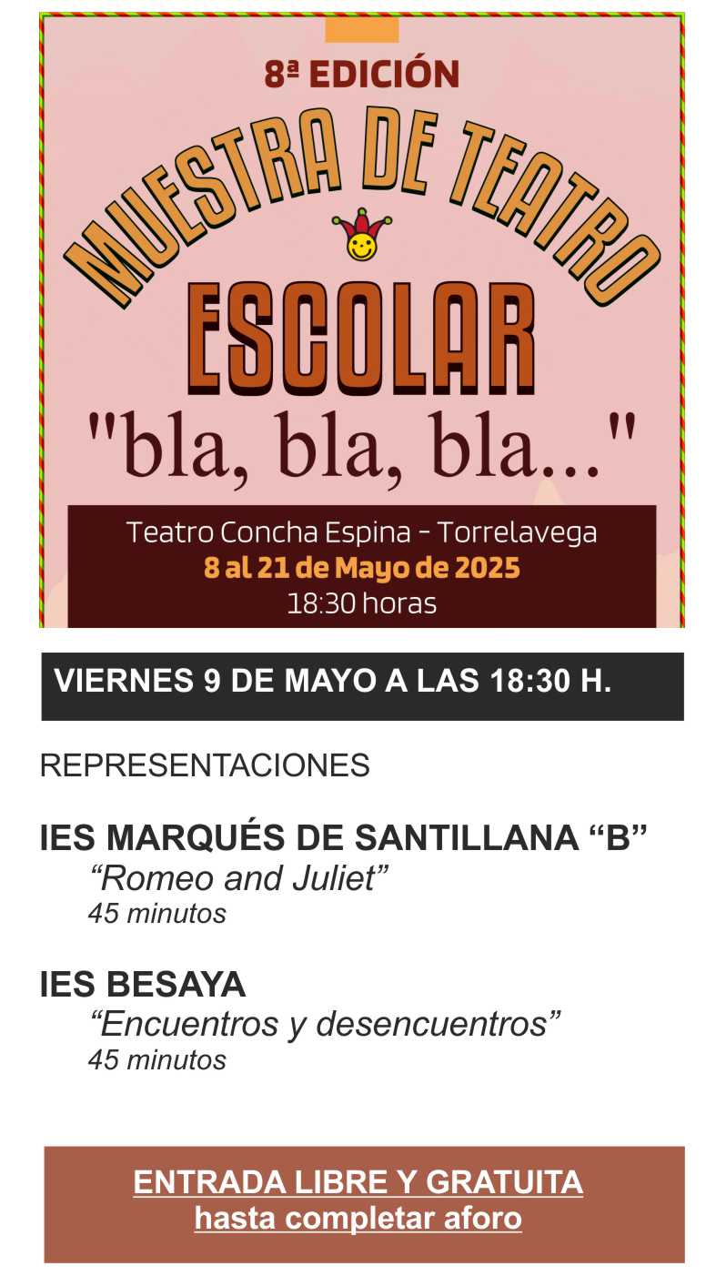 Muestra de Teatro Escolar. Viernes 9 de mayo 2025