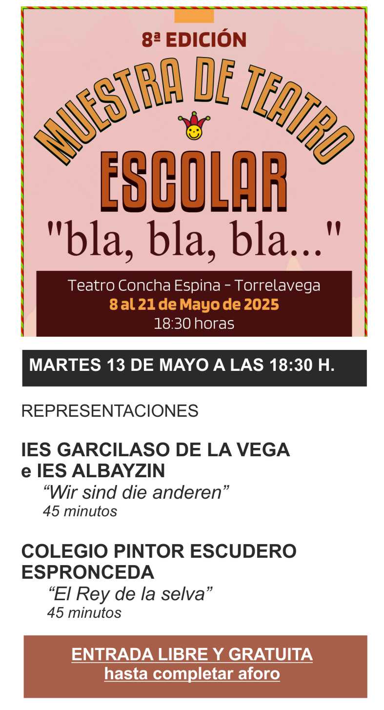 Muestra de Teatro Escolar. Martes 13 de mayo 2025